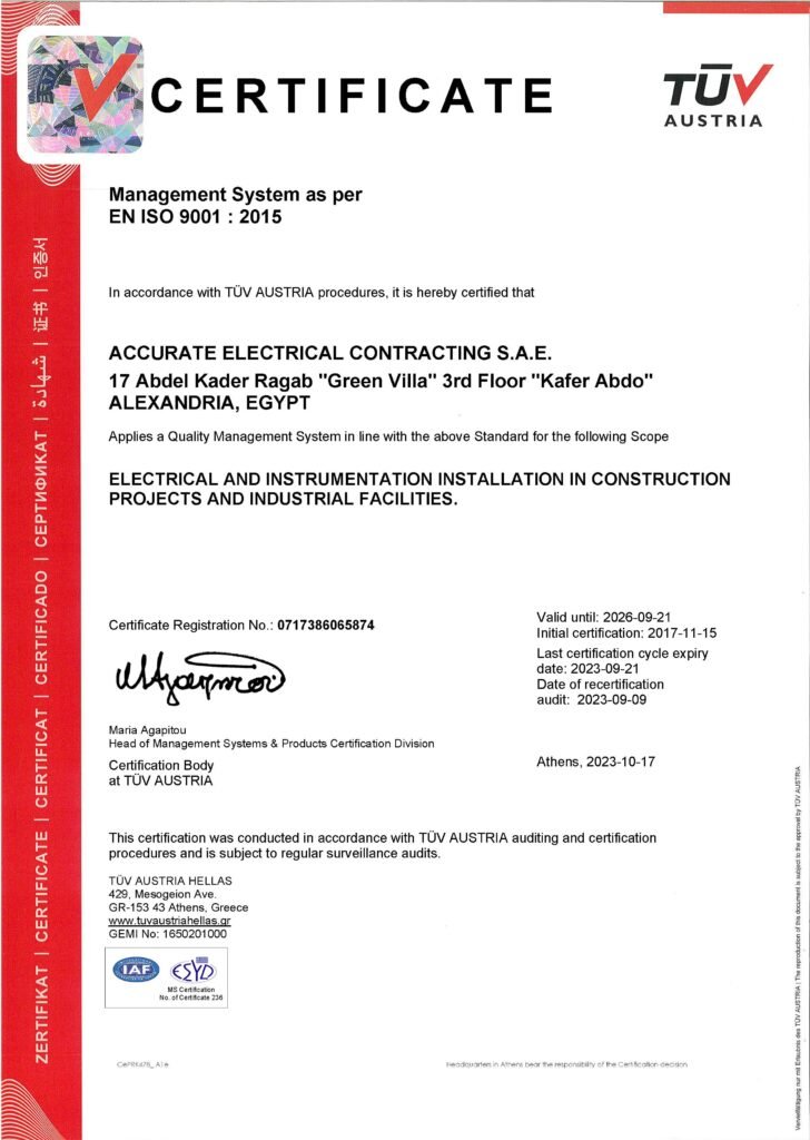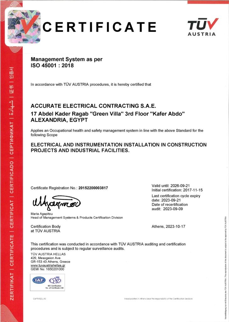 Accurate is an ISO certified company with certification for ISO 9001:2015 Quality Standard, ISO 14001:2015 Environmental Standard and ISO 45001:2018 health and safety management systems.